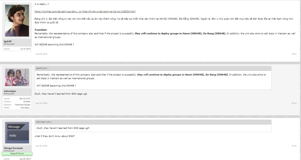 Kabar sister group SGO48 ini sempat menjadi perbincangan yang hangat di forum diskusi milik Stage48. Sebagian penggemar mempertanyakan apakah SGO48 akan menjadi ‘SNH48’ yang kedua? Bahkan ada yang mempertanyakan jika HNO48 dan DNA48 terbentuk apa nanti akan berada dibawah naungan AKS atau tidak. Ada juga yang penasaran tentang kontrak AKS dengan perusahaan waralaba di luar negeri. Bagaimana dengan kalian?