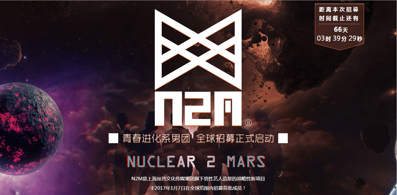Overseas48.com – SNH48 telah mengumumkan pembentukan saudara grup mereka yaitu Nuclear 2 Mars (N2M). Pembentukan mereka diumumkan pada saat acara Request Time ketiga lalu (7/1/2017). Nuclear 2 Mars membuka kesempatan bagi para laki-laki seluruh dunia untuk mengikuti audisi anggota mereka.