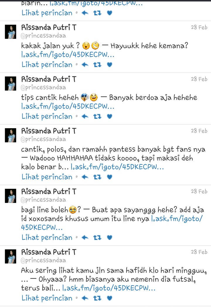 Dikabarkan Rissanda telah memiliki sebuah akun ask.fm bernama @sandaajavadd.